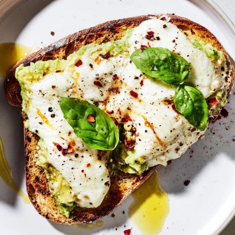 Pin It There was this morning last spring when I had fifteen minutes before a video call and absolutely nothing appealing in the fridge except half an avocado and some mozzarella I'd bought for pizza that never happened. I toasted two slices of sourdough, smashed the avocado with a squeeze of lemon, layered on the cheese, and shoved it under the broiler. When I pulled it out, the mozzarella was bubbling and golden, and the whole thing smelled like a cafe I couldn't afford to visit. I ate it standing at the counter, and it tasted better than anything I'd ordered out in weeks.