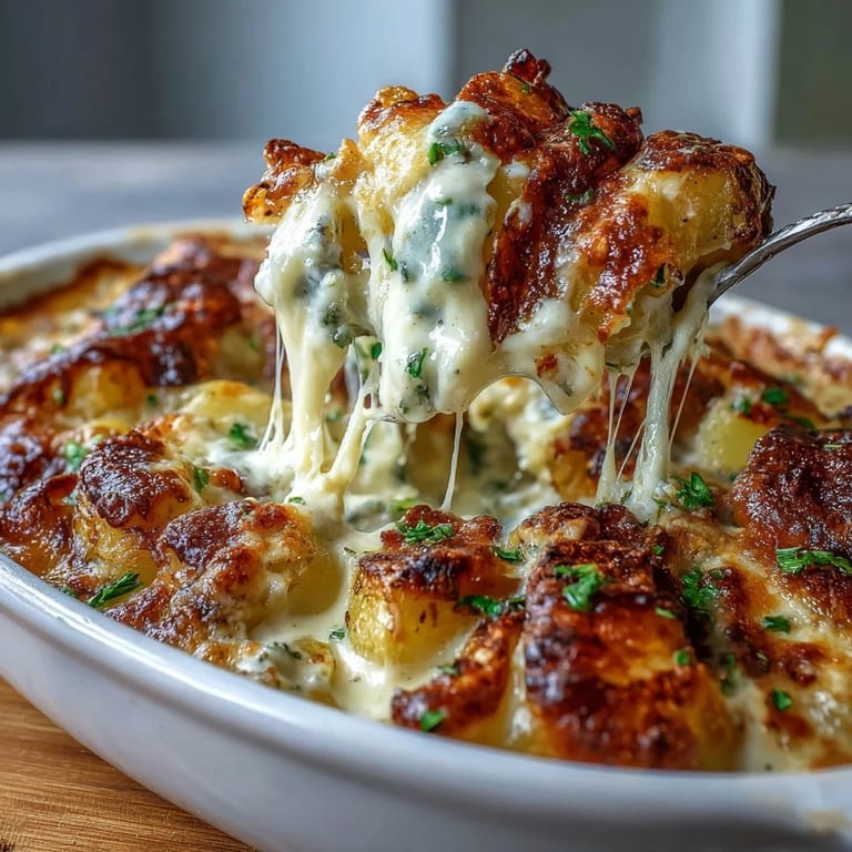 - Let it sit for 10 minutes before serving, which sounds like forever but actually allows everything to set up so you get clean, beautiful portions instead of soupy spoons. Scatter the chives or parsley on top if you're using them, and serve while it's still warm and steaming.