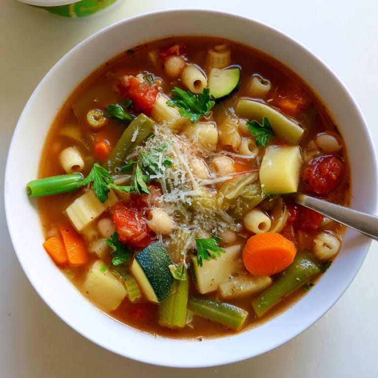 Pin It The first time I made minestrone, I was snowed in during a blizzard with nothing but a crisper drawer full of aging vegetables and a pantry full of canned goods. That impromptu pot of soup taught me that minestrone isn't really a recipe at all, it's a kitchen philosophy—use what you have, cook it slowly, and let the flavors find each other. Now I make it whenever life feels chaotic, because there's something deeply grounding about standing over a simmering pot, watching vegetables soften into something greater than themselves.