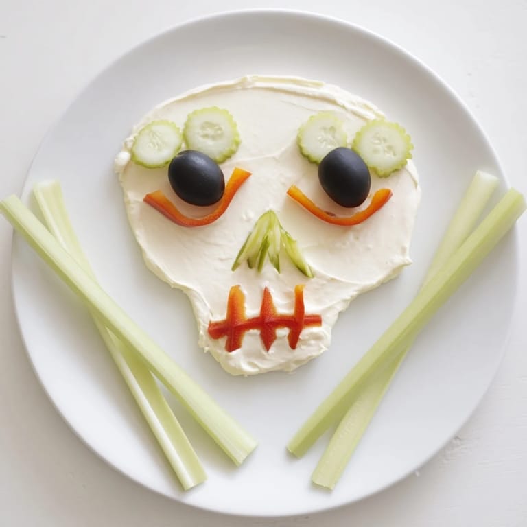 Pin It I'll never forget the Halloween party where I frantically assembled this Skull & Bones spread minutes before guests arrived. My eight-year-old niece had begged me to make something "spooky but not actually gross," and as I shaped that creamy mixture into a skull on my favorite blue platter, I realized I'd created something that felt both genuinely festive and surprisingly simple. Now it's become the appetizer that gets requested every October, the one that makes kids and adults alike lean in with genuine delight before diving in with their crackers and vegetables.