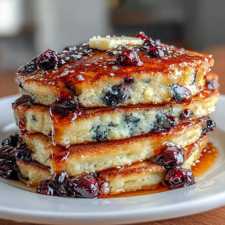 For the fluffiest pancakes, avoid overmixing the batter—a few lumps are perfectly fine and will disappear during cooking. If using frozen blueberries, toss them in 1 tsp of flour before folding into the batter to prevent purple streaking. Keep finished pancakes warm in a low oven (200°F/95°C) while you cook the remaining batches. These pancakes freeze beautifully; simply layer them between parchment paper, store in an airtight container, and reheat in a toaster or oven for a quick breakfast.