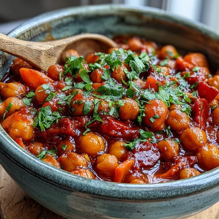 Pin It There's something about the smell of cumin hitting hot oil that stops me mid-thought every single time. Years ago, a friend brought this stew to my place on one of those gray afternoons when I wasn't expecting company, and the moment I opened the door, that warmth just wrapped around me. She said it was something her neighbor taught her, nothing fancy, just chickpeas and whatever spices were calling from the cabinet. I've made it dozens of times since, and it never feels the same twice—sometimes it's pure comfort, sometimes it's what I need when the weather turns.