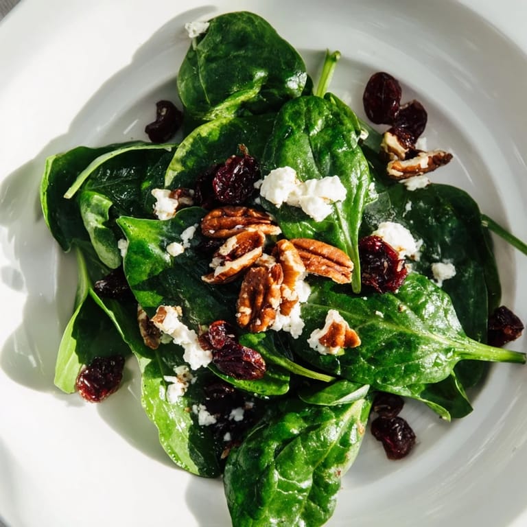 Pin It My neighbor handed me a bag of spinach from her garden one Saturday morning, far more than I could use in smoothies. I tossed it with whatever I had in the pantry: some goat cheese left from a dinner party, cranberries I'd bought for baking, and pecans I'd candied weeks earlier on a whim. That careless assembly turned into the salad I now make whenever I want something that feels special without any fuss.