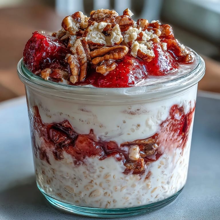 Pin It This recipe transforms simple pantry staples into something truly special. The overnight soak softens the oats to creamy perfection while allowing the vanilla and cream cheese to infuse every bite. Fresh strawberries tossed with a hint of lemon juice brighten the entire dish, while crushed graham crackers add that signature cheesecake crust crunch. Whether you're meal-prepping for the week or treating yourself to a weekend breakfast, these overnight oats deliver both comfort and nutrition in every spoonful.