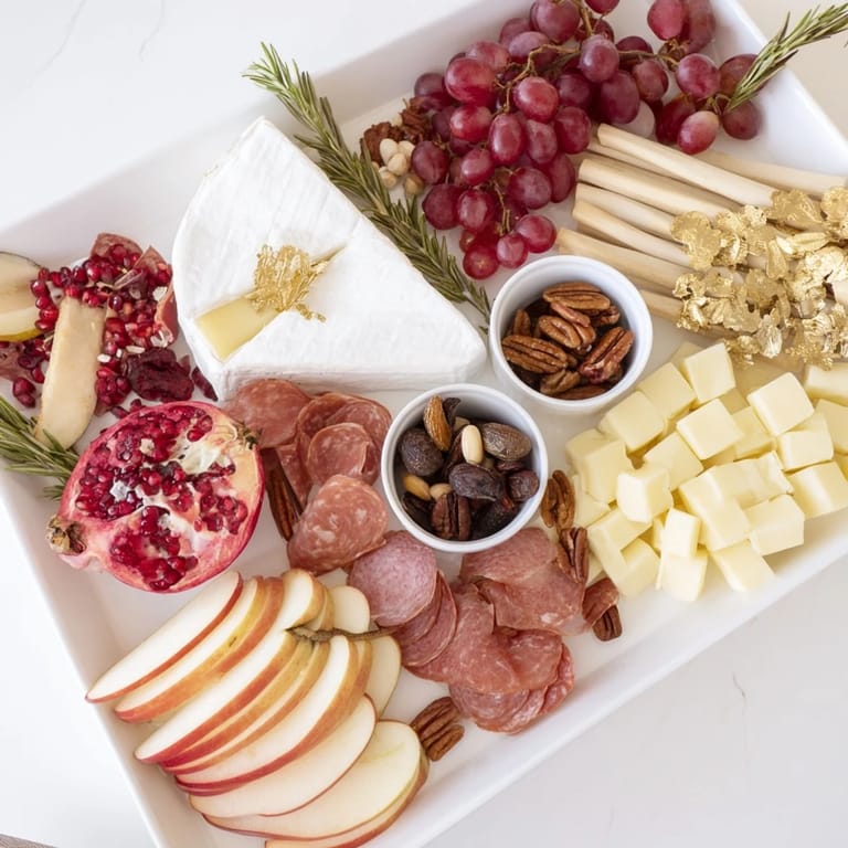 - Cheeses: 100 g Brie cheese, sliced, 100 g aged cheddar, cubed, 100 g goat cheese, shaped into a log